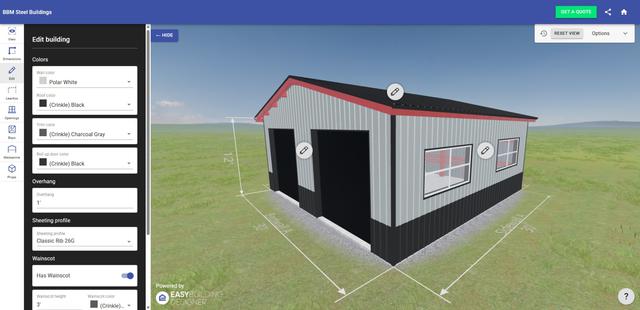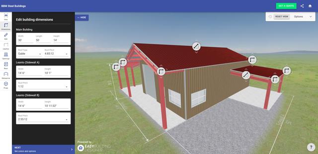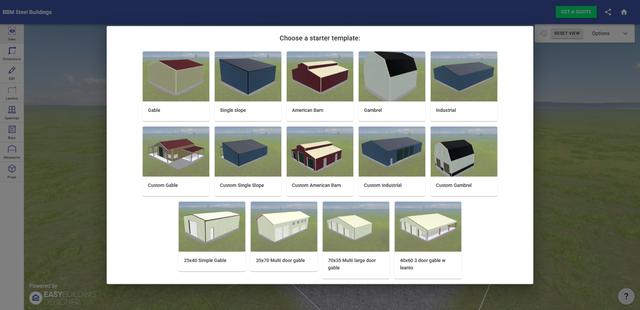 Check out the Building Designer and make sure to save in the notes: Richards Metal Buildings.